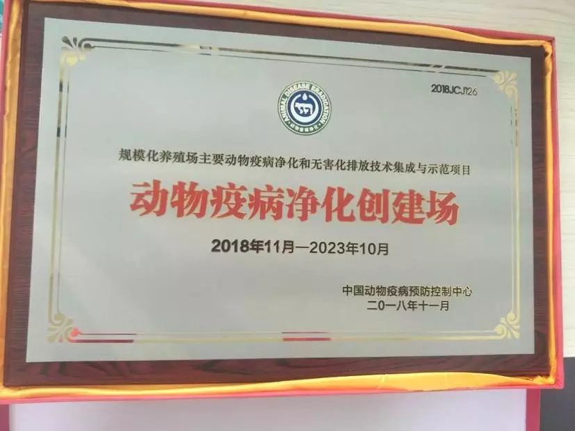 2018年7月,華裕農(nóng)業(yè)科技有限公司通過專家組現(xiàn)場評估,祖代種雞場完全符合疫病凈化工作要求,獲得“疫病凈化創(chuàng)建場”稱號并已授牌。
