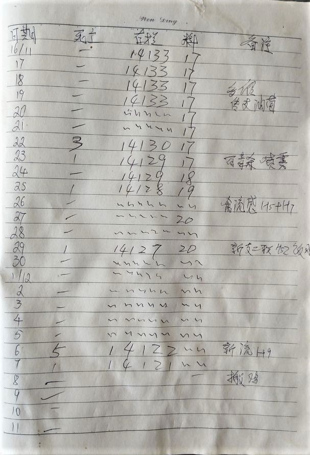 12月8日(75日齡)轉群到產蛋雞舍,存欄數14121,死淘159只,脛骨長度達標。