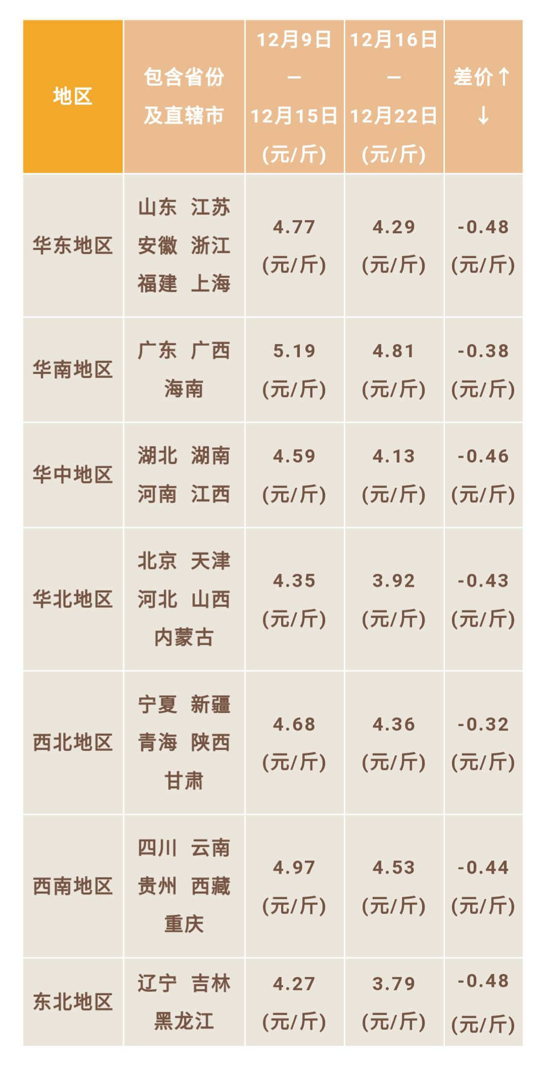 雞蛋價(jià)格 | 截止12月22日各地區(qū)周平均雞蛋價(jià)格及行情分析