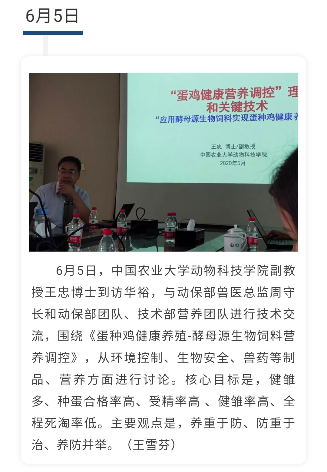 【一周快報】中國農業大學動物科技學院副教授王忠來訪華裕