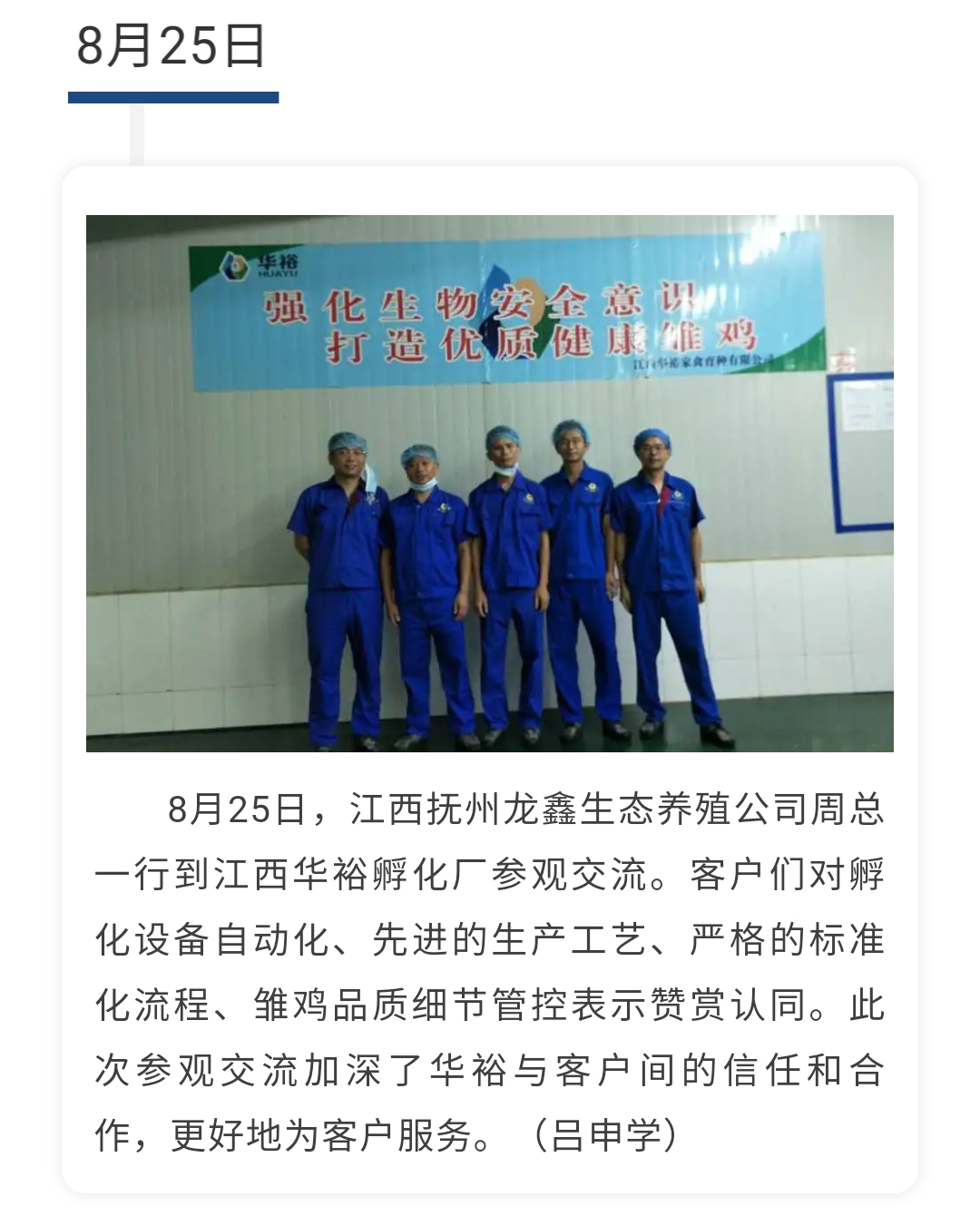【一周快報(bào)】江西撫州龍?chǎng)紊鷳B(tài)養(yǎng)殖公司人員參觀江西華裕