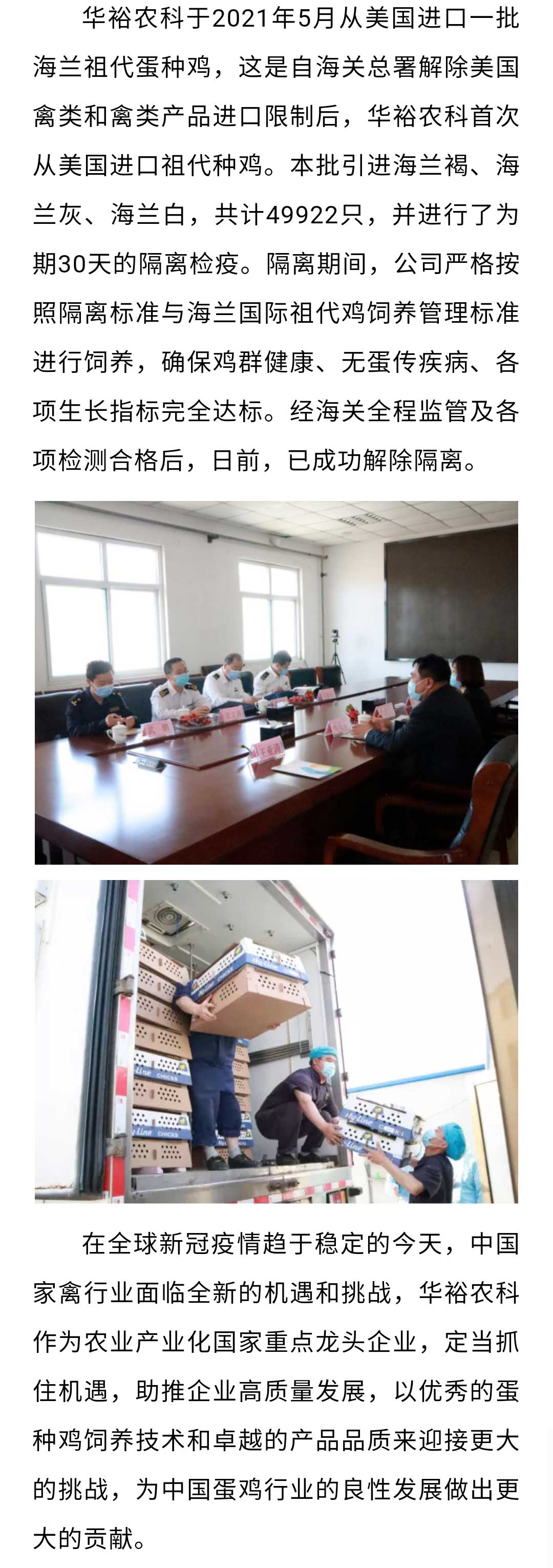 【祖代雞引進(jìn)】華裕農(nóng)科成功從美國引進(jìn)海蘭祖代蛋種雞