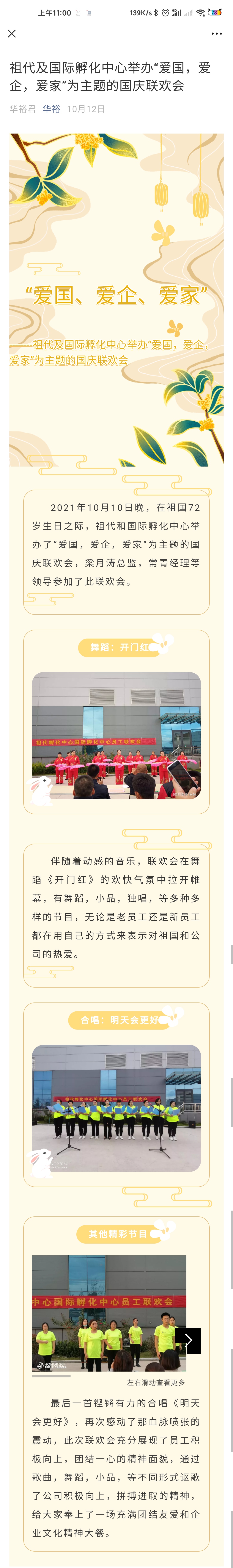 祖代及國際孵化中心舉辦“愛國,愛企,愛家”為主題的國慶聯歡會